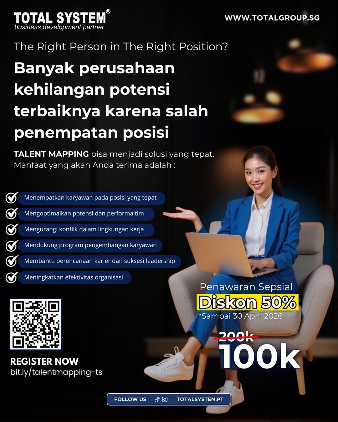 Bagaimana Total System dapat membantu usaha Anda mencapai bisnis yang tersistemasi secara menyeluruh? Dengan tim professional yang berpengalaman dan berkompeten, kami akan secara aktif terlibat langsung di perusahaan anda dan melakukan review, konsultasi hingga bertanggung jawab atas berjalannya sistem baru yang telah dibuat dan disepakati bersama.